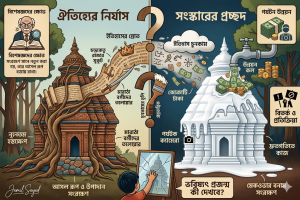 এই কারণেই নয়াগ্রামের রামেশ্বর মন্দিরকে ঘিরে অভিযোগটি শুধু “চুনকাম হয়েছে” বলেই থেমে থাকছে না। বিষয়টি আসলে আরও গভীর। যদি সত্যিই মন্দিরের প্রাচীন মাকড়া পাথরের শরীরকে ঢেকে দিয়ে, ক্ষয়চিহ্ন মুছে দিয়ে, স্থাপত্যের যুগচরিত্র বদলে দেওয়া হয়ে থাকে, তা হলে সেটি সংস্কার নয়—ঐতিহ্যের উপর প্রশাসনিক ‘মেকওভার’। আর সেই মেকওভার যতই চকচকে হোক, ইতিহাসের চোখে তা ক্ষতি হিসেবেই গণ্য হতে পারে।